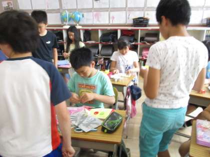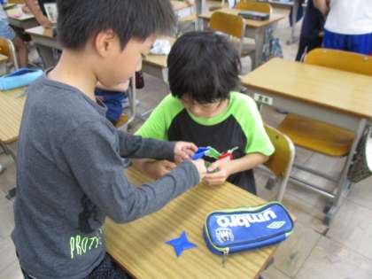 1年生迎える会の準備の様子です。プレゼントに折り紙を作っています。上手くできるでしょうか?