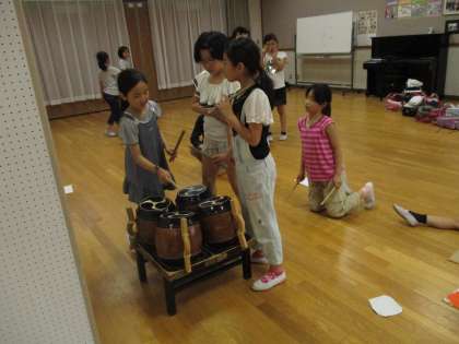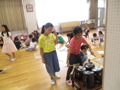中堂寺六斎念仏の部活もありました。下級生に教える姿も見られました。