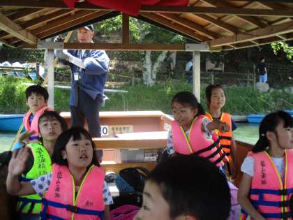 屋形船に乗りましたが,みんな大喜びでニコニコしていました。