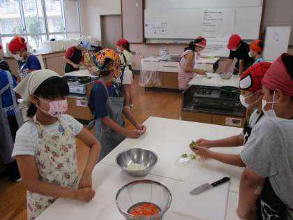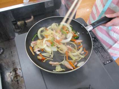 6年生で初めての調理実習を行いました。今回は栄養のバランスを考えて、色々な食材を炒め、朝食のおかずを作ろうというねらいでした。5年生での経験もあり、手際よく作れました。お家でも作ってみてくださいね。