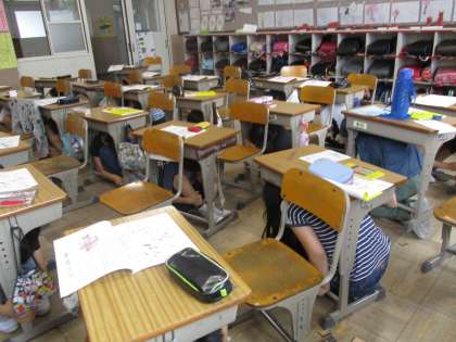 2時間目は避難訓練でした。避難訓練後,子どもたちの声から「喋りながら移動してしまっていた。」などの感想がありました。避難訓練への慣れからか少し緊張感に欠けていたように感じました。避難訓練の大切さを子どもたちと改めて考えました。