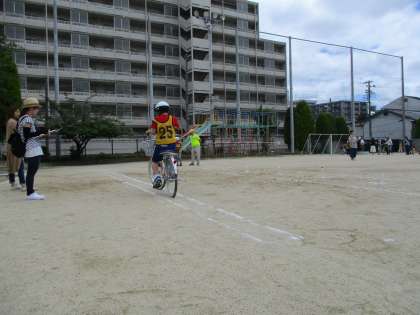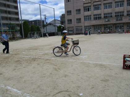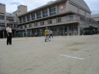 技能コースでは、ピンの立っている間をぬって、ジグザグに走行する練習と、30cmの幅をゆっくりと走行する練習をしました。どちらも難度が高いですね。みんな慎重に取り組んでいました。
