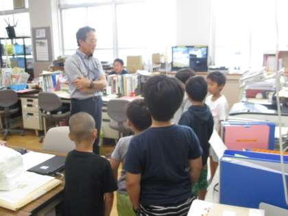 1年生だけで学校探検をし,聞きかかったことを聞きました。先生方の仕事や道具のことなど,色々なことを教えてもらって大満足な様子の子どもたちでした。