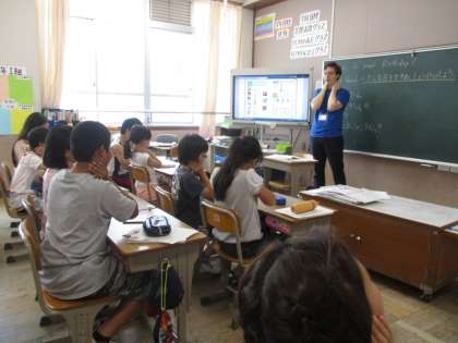 今日はジェイミー先生が来校されました。「When is your birthday?」という単元で,お互いに誕生日を尋ね合いました。