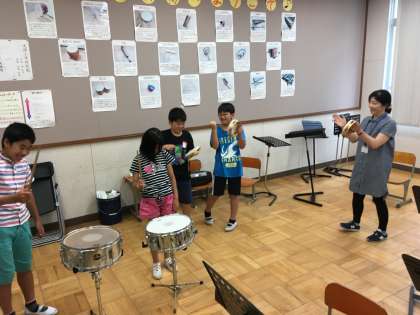 音楽の授業では,「いろいろな楽器のがの重なり合う響きを楽しみながら演奏しよう」というめあてで合奏をしようとしています。今日はその楽器選びをしました。いろいろな楽器に触れ自分がしたい楽器を決めました。