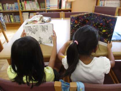 図書室で本に親しんでいます。借りた本をじっくりと読む姿はとても素敵です。