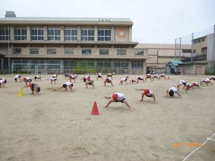 ソーラン節もだんだん上手に踊れるようになってきました。初めて運動場へ出て踊りました。歩幅に気を付けて素早く移動するのが、ちょっと難しいようです。