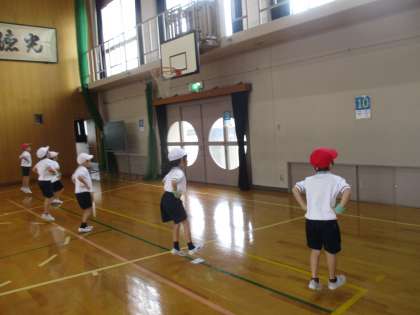 運動会が近づいてきました。あいにくの雨で,体育館での練習でしたが,子どもたちは元気いっぱいに踊っています。動きもだんだんそろってきました。
