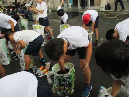 1人1人に栽培キットの袋が配られ,そこに1人9粒の大根の種を植えました。