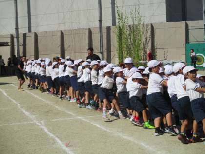 みんなで力を合わせて綱をひっぱりました。押して押されてのいい勝負でしたが,結果は,白組の勝ちでした!
