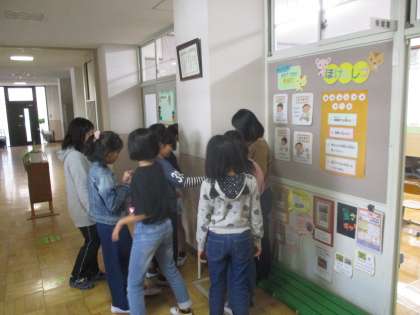 今日の中間休みに保健委員会主催のオリエンテーリングがありました。保健に関わるクイズラリーでした。みんなで楽しくクイズを捜し,問題を解いていました。