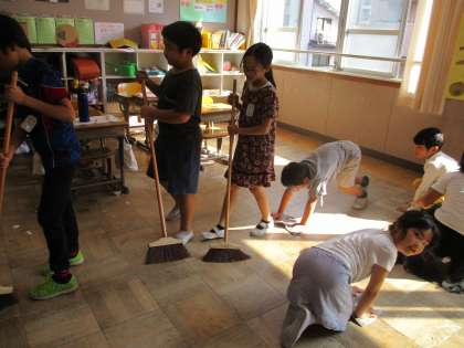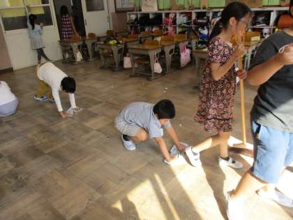 掃除時間の様子です。教室をきれいに頑張っています。