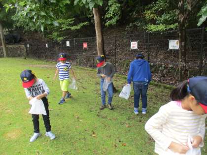 宝が池公園子どもの楽園では,生活科の学習で秋見つけをしました。子どもたちは,きれいな葉っぱやどんぐりなどをたくさん見つけていました。「これでおめんを作ろう!」と,もう作る物を決めてわくわくしている人もいました。