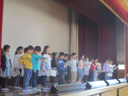 世界の様々な国の「音楽」で旅することをテーマに,発表をする準備をしています。今週は体育館に練習場所を移し,セリフを大きな声で言ったり,歌ったり,演奏したりしています。いよいよ本番まで一週間です。