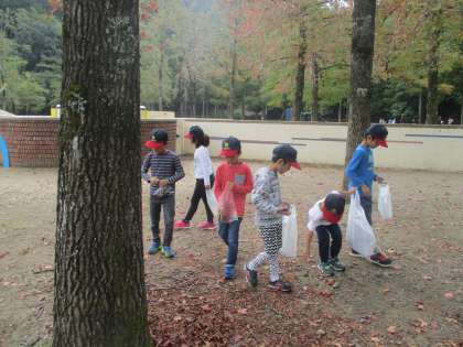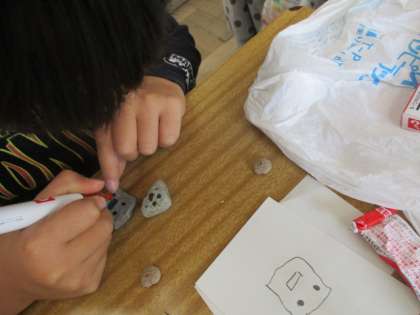 秋の遠足で見つけてきた,どんぐりや小石などの小さな「おともだち」。