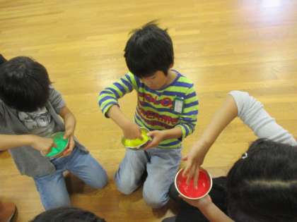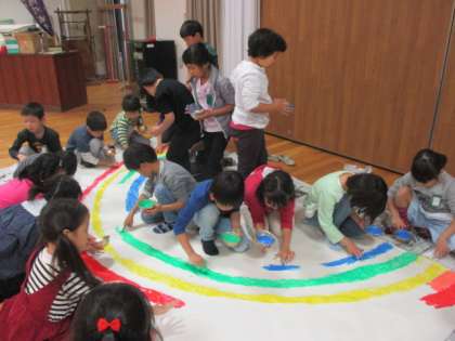 最初はその触感に少し戸惑い気味の子もいましたが,すぐに慣れてみんな楽しそうに取り組んでいました。今日は1組が半分塗り,残りは2組が仕上げてくれることになっています。完成が楽しみです!