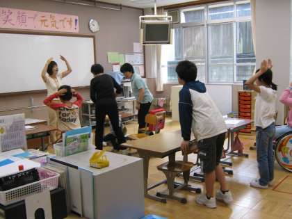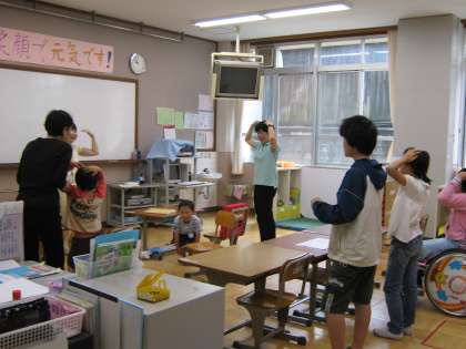 6月11日 音楽の時間に, 担任が歌う英語の歌に合わせて, 頭・肩・膝・つま先にさわりました。楽しい音楽の時間でした。