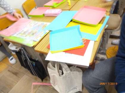 厚紙を使って、ビー玉をコロコロと落していく楽しいゲームを作っています。今日は、土台の箱作りをしました。「どんな仕組みにしようかな。」みんなとても楽しそうですね。