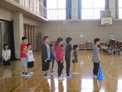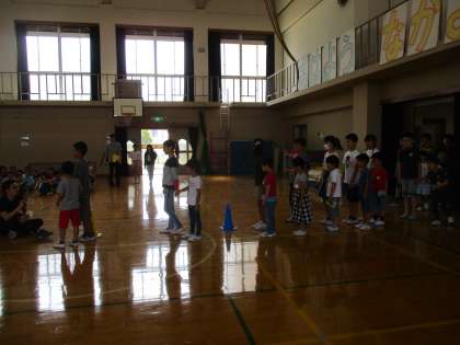 1年生を迎える会がありました。6年生のお兄さん,お姉さんに手をつないでもらいながら,自分の名前を言いました。