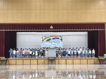 いよいよ発表の時です。少し緊張もありましたが,みんなからの温かい視線の中,大きな声で歌うことができました。アイアイビームを飛ばすところでは,6年生が受け取ってくれて,気持ちが伝わったと大喜びでした。