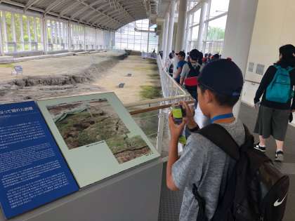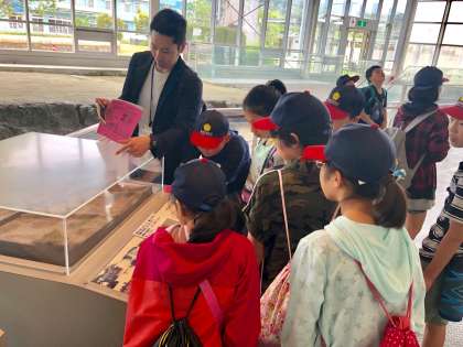 館内見学です。子どもたちは地震の被害の様子を知るとともに,地震が起こるメカニズムを学習しています。