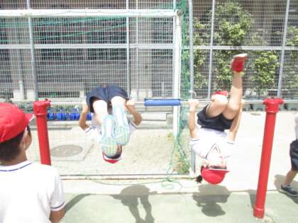 鉄棒遊びも2回目になりました。今日からは,できるようになる技を増やそうと,前回より挑戦する技を増やして頑張りました。さかあがりにも少しずつ取り組んでいきます。