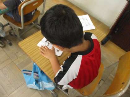 硬筆書写の学習をしました。とめ・はらいに気を付けて,カタカナを丁寧に書きました。黙々と集中していました。