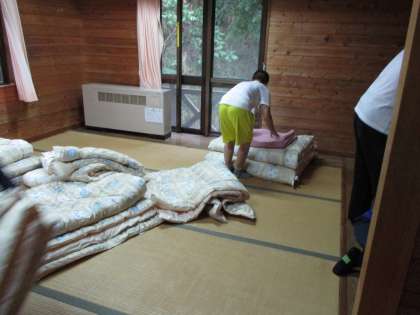 使ったふとんや毛布を丁寧に整頓し、掃き掃除を手際よく勧めました。