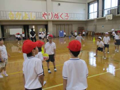 今日は体育でドッジボールをしました。1年生みんなでできたので,とても盛り上がりました。ルールも覚えたばかりですが,一生懸命ボールを見て動いていました。