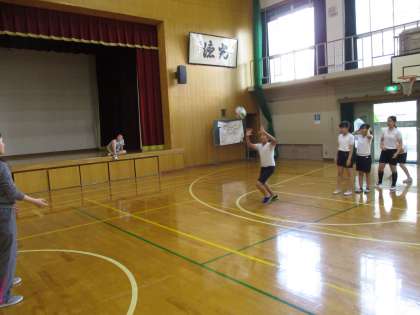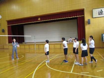 体育館ではバレーボール部がトスやレシーブなどの基本的な動作の練習をしていました。