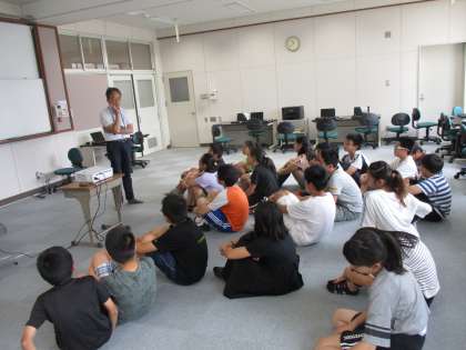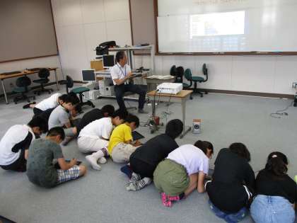 ほぼ全員の児童が初めての経験でしたが,プログラムの命令ブロックを並べるといった視覚的にオブジェクト(命令ブロック)を組み合わせるプログラミング言語なのでプログラミングはそれほど難しくなかったようです。
