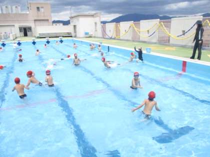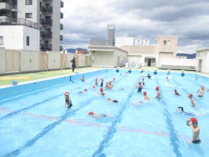 体育科では,水あそびの学習を行っています。約1年ぶりにみんなで「宝探し」をしました。水の中の宝を見つけ,上手に拾っていました。