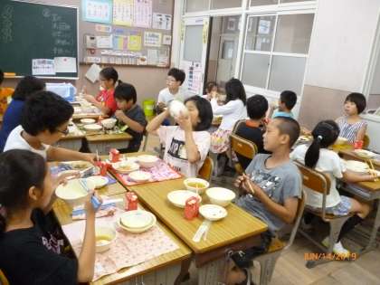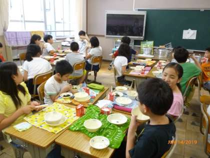 山の家でも,食欲旺盛な5年生でしたが,給食ももりもり食べています。今日は,きつね丼とひじきと小松菜の炒め物,みそ汁でした。厚くなってきたので,牛乳がおいしいです