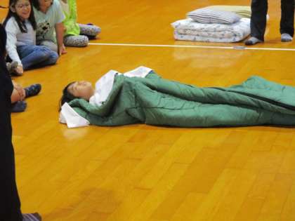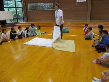 みさきの家の生活で大切なのは、トイレの使い方や寝具の扱い方です。楽しく説明していただきました。