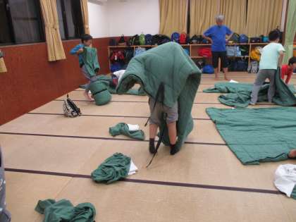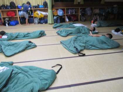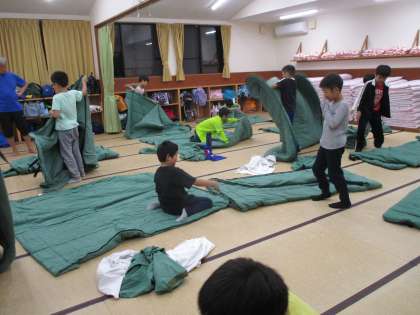 今日の活動は、すべて終了しました。明日の活動は盛りだくさんです。かご漁釣り上げ、磯観察、野外炊事、ナイトハイクとたくさんあります。明日に備えて早く寝ましょう。おやすみなさい。
