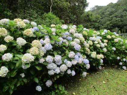 今日の夜歩くコースの下見です。日中の風景が夜になるとどのように変化するのか楽しみです。途中のアジサイがきれいでした。