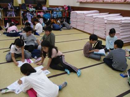 今日は多くの活動に取り組みました。今日の振り返りをして、がんばったことや思い出に残ったことなどを話し合います。