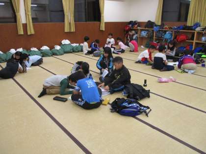 今、小雨が降ってきました。みんな元気です。しかし、今日の活動でがんばったこともあり、つかれているので早く寝られると思います。