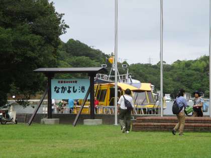 みさきの家を出発してなかよし港まで歩き,船に乗って賢島まで乗船です。湾には,真珠を養殖する筏がいくつもありました。