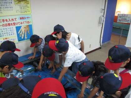 ペンギンタッチから始まった見学は,ドクターフィッシュやマンボウなどいろいろと楽しみました。