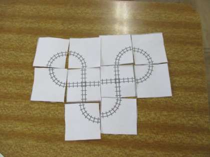 算数科で,「夏休みの算数の自由研究」の学習をしました。線路づくりの学習でしたが,みんな思い思いの線路を作っていました。