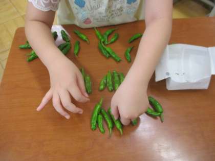 毎日の水やりを楽しみにしています。この日は三連休の後で,なんと一本の苗から61個のシシトウが採れました。