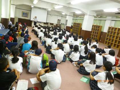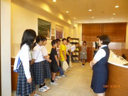 今日は,一日「生き方探究館」で,スチューデントシティ学習をします。到着して,広場に集合しました。