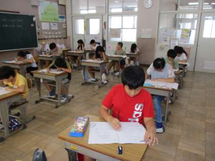 国語と算数のテストを受けました。40分間集中して解き続けため,疲れた様子でしたが,今まで学習してきたことを思い出しながら一問一問頑張って回答していました。