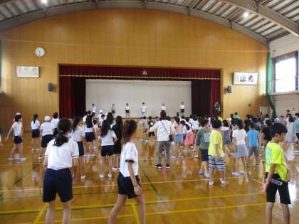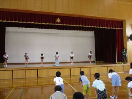 今日は準備運動の練習が中間休みにありました。みんな楽しそうに取り組んでいました。
