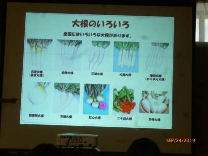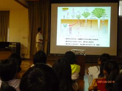 今日は,京果さんとタキイ種苗さんに来ていただいて,大根の種まきをしました。まずは,大根について教えていただきました。