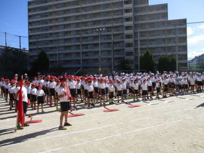 今日は全校練習がありました。気持ちのよい秋晴れのもとでの全校練習でした。応援合戦も盛り上がり,運動会への気持ちの高まりが感じられました。