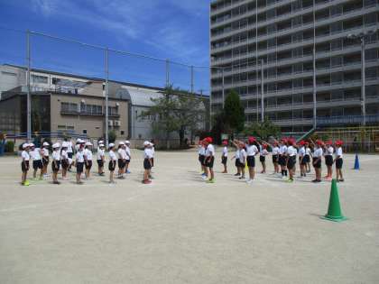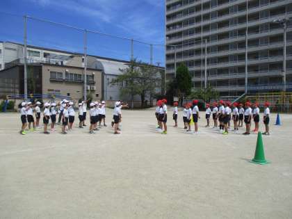 あさってに控えた運動会に向け,最後の練習をしました。入場の場面から,気合いを入れて取り組みました。