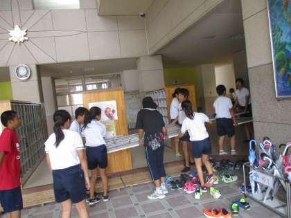 明日は運動会です。高学年で前日準備をしました。