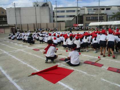 白組も力いっぱい頑張りました。両チームの力いっぱい,あきらめない頑張りのおかげで,楽しい運動会になりました。
